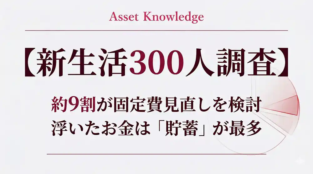 | 当社の資産運用メディア「Asset Knowledge(アセットナレッジ)」では、全国の20代以上の男女を対象にアンケートを実施し、新生活における固定費見直しと資金管理の実態を調査しました。 | |||||||||||||||