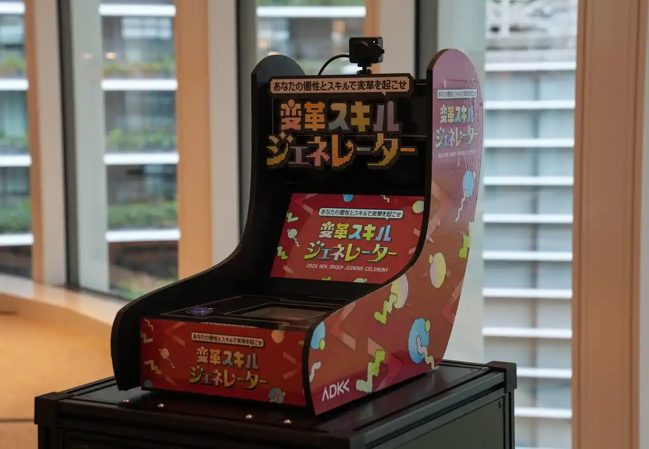 株式会社ADKホールディングス(本社:東京都港区、代表取締役社長:大山 俊哉)は、2026年4月1日にADKグループ2026年度入社式を実施し、新入社員91名を迎えました。 本年度の入社式では、新入社員に最新テクノロジーを肌で感じてもらい、ADKグループが掲げるバリュー「全員が、変革者。」を体現する場として、生成AIによってオリジナルのトレーディングカードを生成できる体験型AI筐体「変革スキルジェネレーター」を設置しました。 |