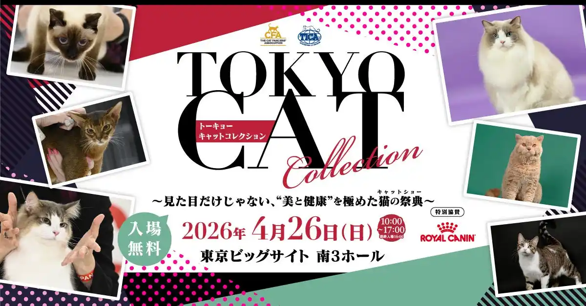 栄養学に基づいて犬と猫の健康を実現する企業(Health Through Nutrition Company)として、プレミアムペットフード および食事療法食を展開するロイヤルカナン ジャポン(本社:東京都港区、社長:日下部 真一、以下、ロイヤルカナン)は、2026年4月26日(日)に東京ビッグサイト(東京都江東区)にて、初開催となるキャットショー「TOKYO CAT COLLECTION(トーキョー キャット コレクション)」(主催:TOKYO CAT COLLECTION実行委員会)に特別協賛いたします。 |