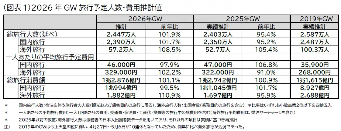 堅調な旅行意欲と日並びの良さを背景に、旅行者数は増加、平均旅行予定費用は前年並み |
