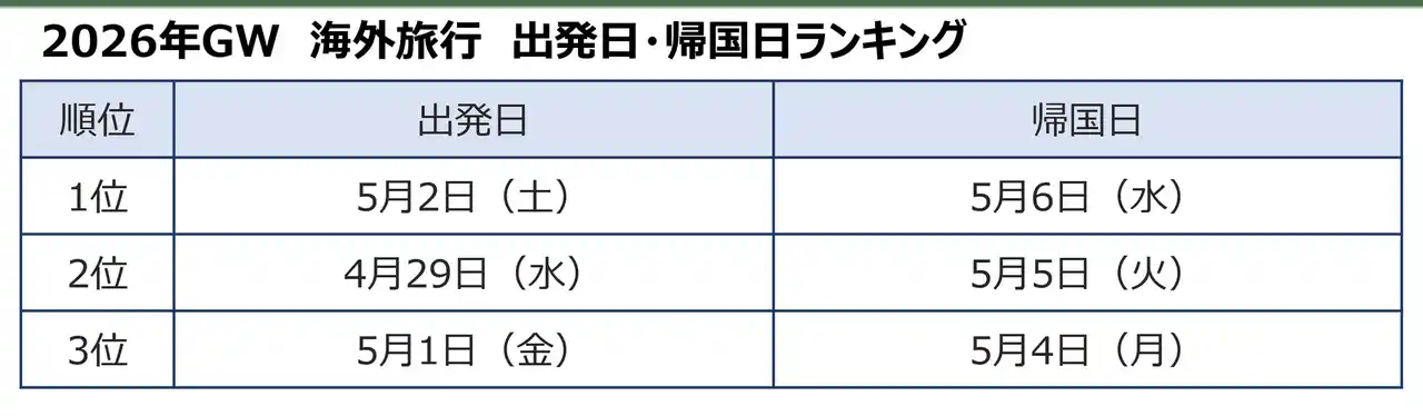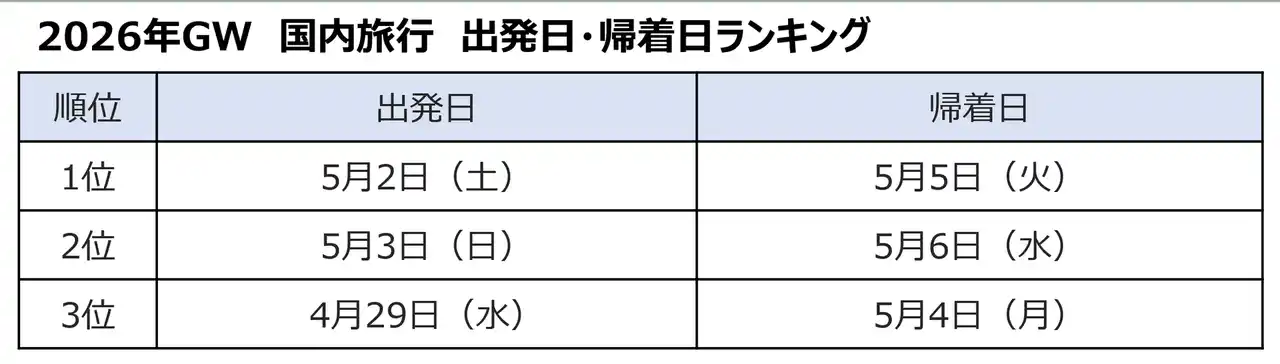 3.人気出発日は、海外旅行、国内旅行ともに5月2日(土)。 |