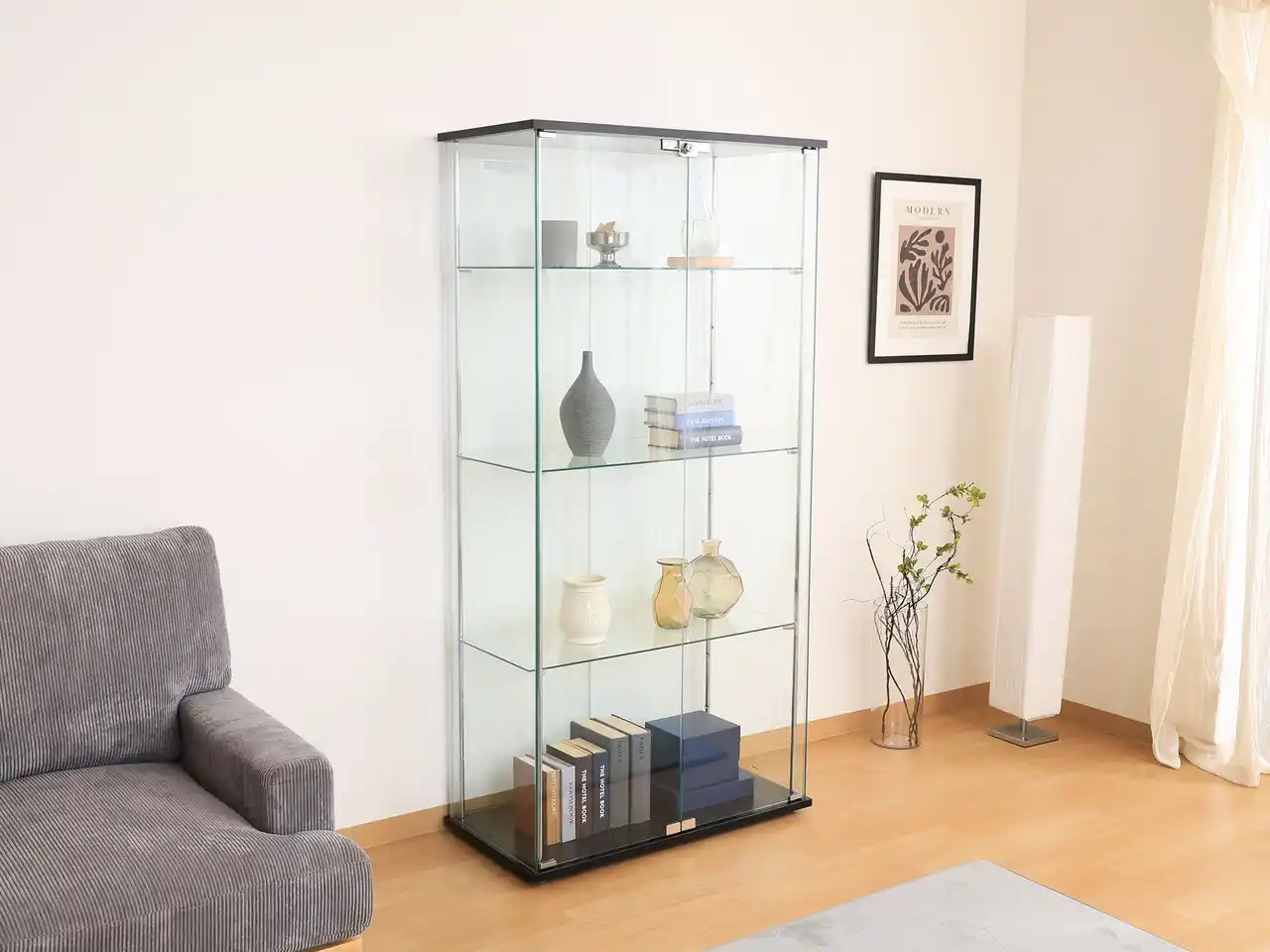 前面だけでなく側面までクリアなガラス仕様。光を取り込み、コレクションを立体的に美しく演出します。置く場所を選ばず、空間そのものがショーケースに変わります。 |
