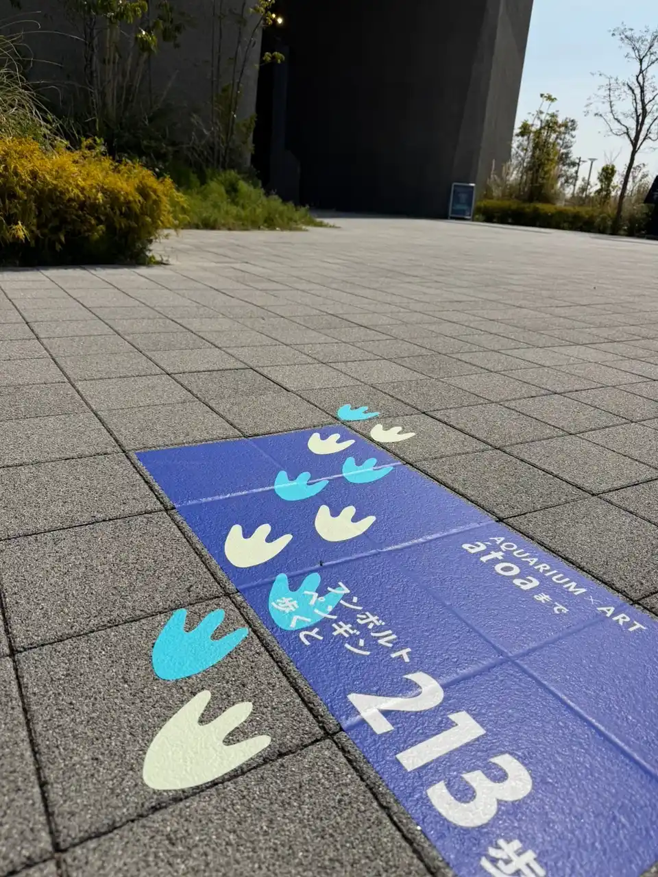 AQUARIUM×ART atoa(神戸市中央区新港町、以下「アトア」)では、株式会社フェリシモ(神戸市中央区新港町、代表取締役社長 矢崎和彦)と協力し、大手前大学の高木准教授監修のもと神戸ウォーターフロントエリアの回遊性を高める「路面サイン」を制作し、2026年3月27日より案内開始します。サインデザインは、ニューシーポート(新港町エリア)のエリアデザインを担当した株式会社Bowlのほそかわ氏が手掛け、エリアとの親和性も意識しました。 |