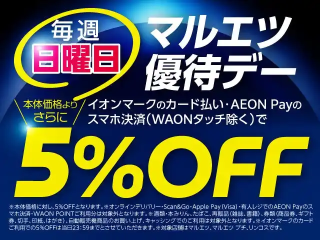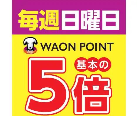 マルエツではイオンマークのクレジットカードをご利用のお客さまを対象に、毎週日曜日のお買い物がおトクになる独自の優待施策を実施しております。また昨年より「WAON POINT」を全社で導入し、当店では「毎週日曜日にほとんど売場全品WAON POINT5倍」をはじめとした様々なポイント企画を実施いたします。 |