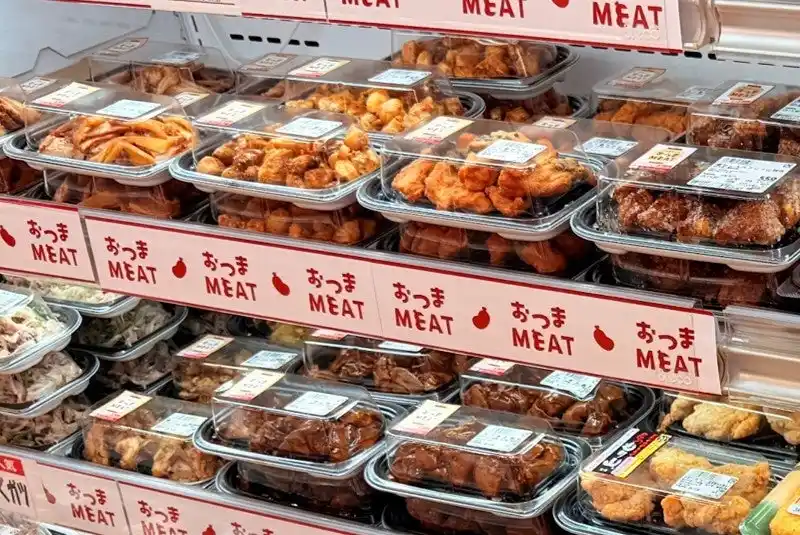 デリカ売場では、手作りおにぎりなど出来たて商品のほか、肉惣菜「おつまミート」や魚惣菜の「おつなフィッシュ」など即食対応の商品を集合展開いたします。また新規MDとして、精肉惣菜のアッパーグレードシリーズ「おとなMEAT」を導入いたします。 |