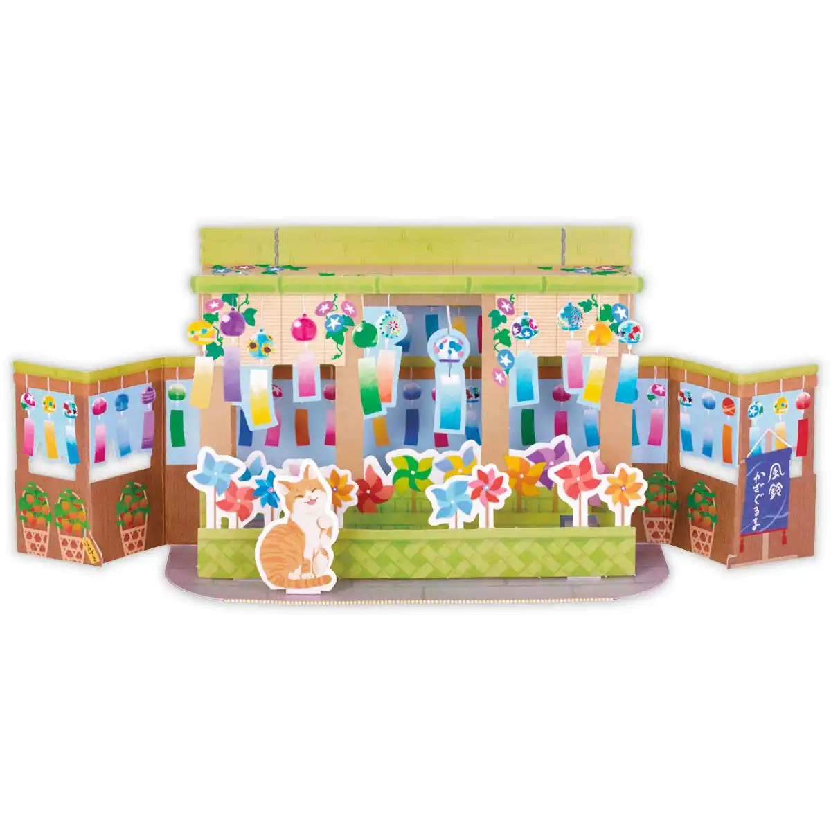 夏の情景をカードに閉じ込めた人気の風景型立体シリーズに、風鈴市をテーマにしたデザインが登場。細かい部分までモチーフが描き込まれており、いろんな角度から見て楽しむことができます。 |