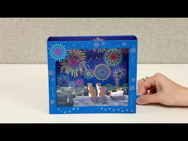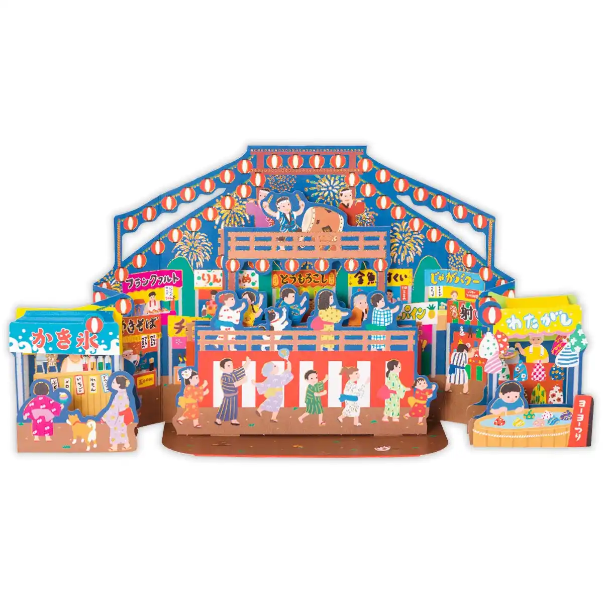 花火と屋台が織りなす夏祭りのワクワク感を立体で表現! やぐらを囲む屋台や下駄の落とし物など、細部までこだわりが詰まった、じっくり見て楽しめるカードです。 |