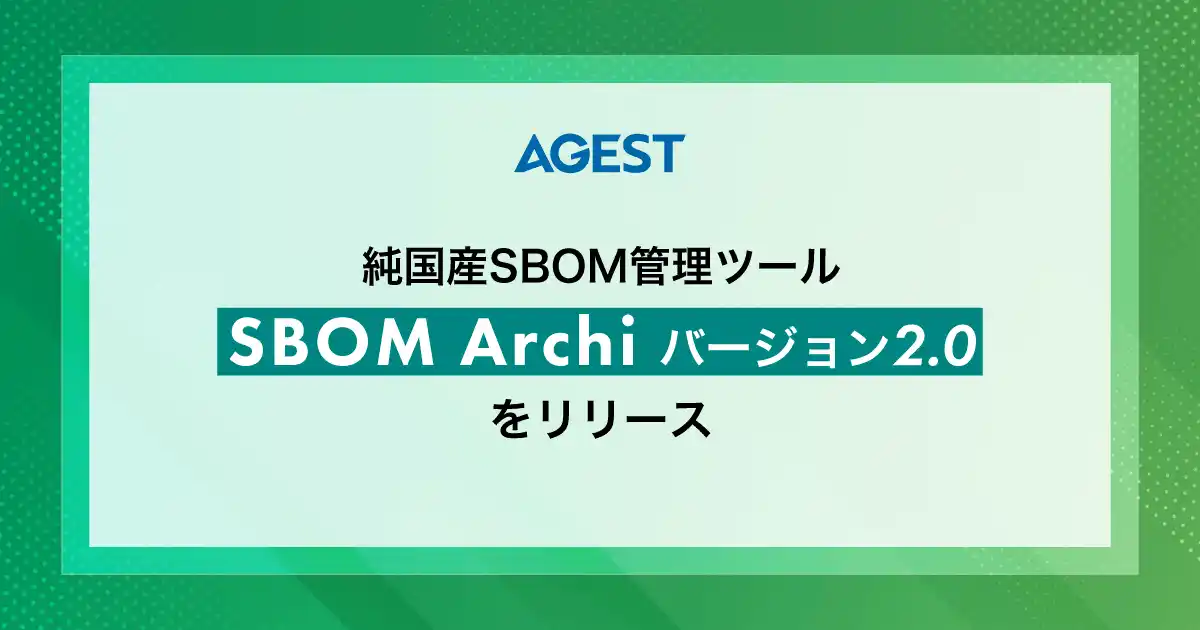 先端品質テクノロジーを活用してソフトウェアの品質・安全性向上を支援する株式会社AGEST(本社: 東京都文京区、代表取締役 社長 執行役員 CEO: 二宮 康真、以下、「AGEST」)は、4月1日(水)に純国産のSBOM管理ツール「SBOM Archi(エスボム アーキ)」の最新バージョン2.0をリリースしたことをお知らせいたします。 |
