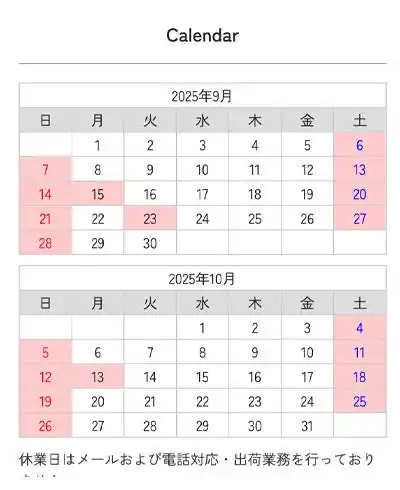 休業日や営業日を掲示、キャンセル/配送連絡の誤情報を防止 |