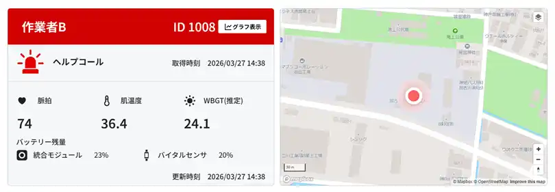 ・環境データも取得し推定WBGTが設定値以上で管理監督者へ通知 |