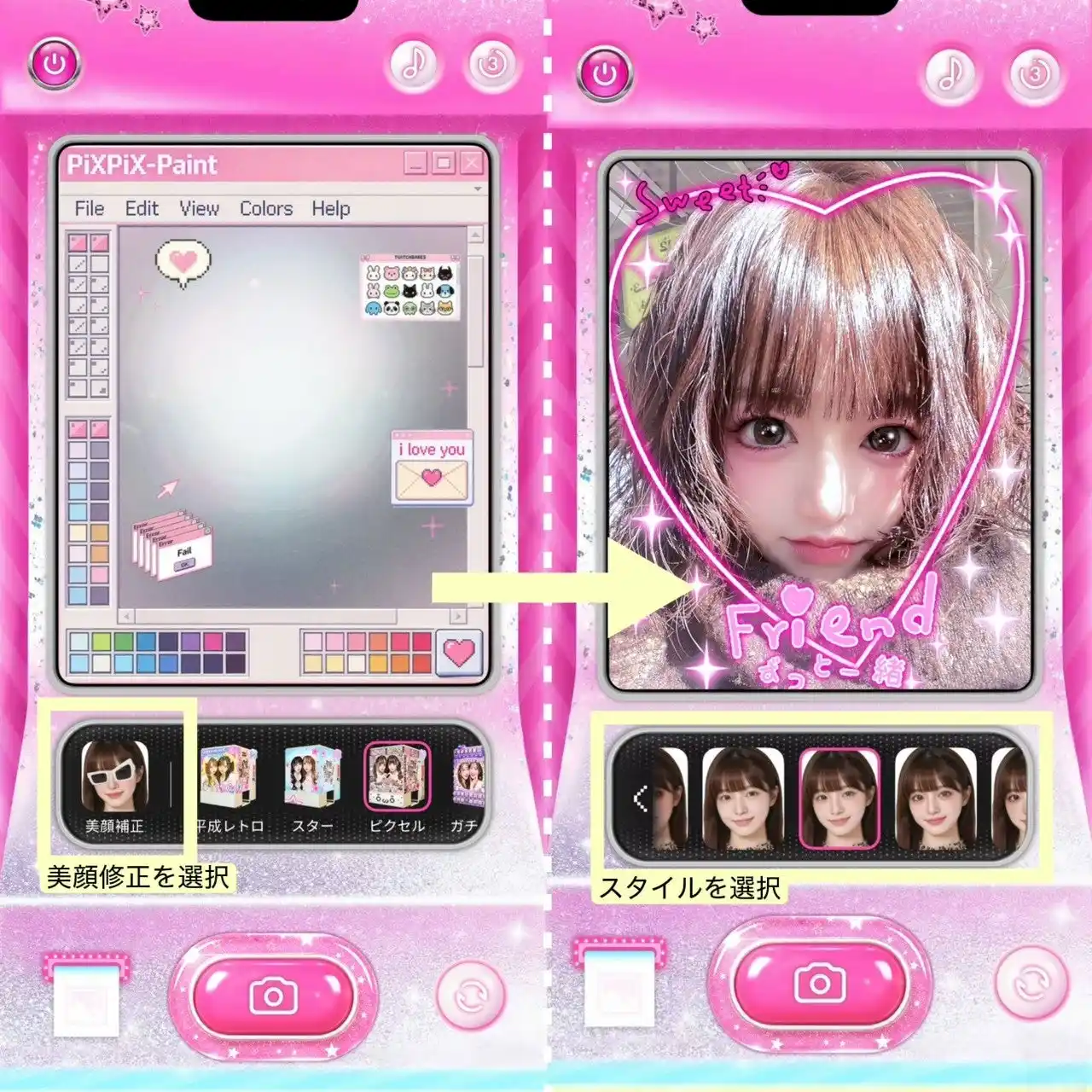 最新のAI技術を駆使しつつも、当時の「プリらしい」写りを現代風にアップデートした最適なフェイススタイルを選択可能です。 |