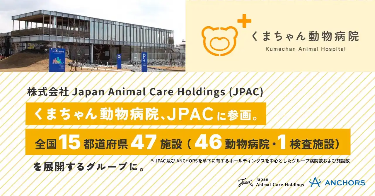 株式会社Japan Animal Care Holdings(以下、JPAC)は、くまちゃん動物病院を運営する、株式会社くまちゃん動物病院がJPACグループに参画したことをお知らせいたします。 |