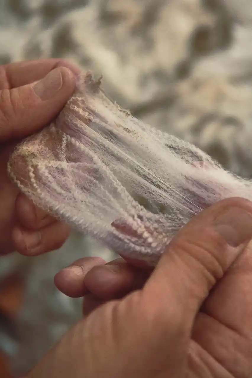 最初のレコード・ベイルは、ニュージーランド産のメリノウールで、13.8ミクロン、重さ100kgでした。ブリーダーたちの惜しみない献身と、より上質なウールを生産したいという情熱のおかげで、繊維の細さはおよそ30%向上しました。 |