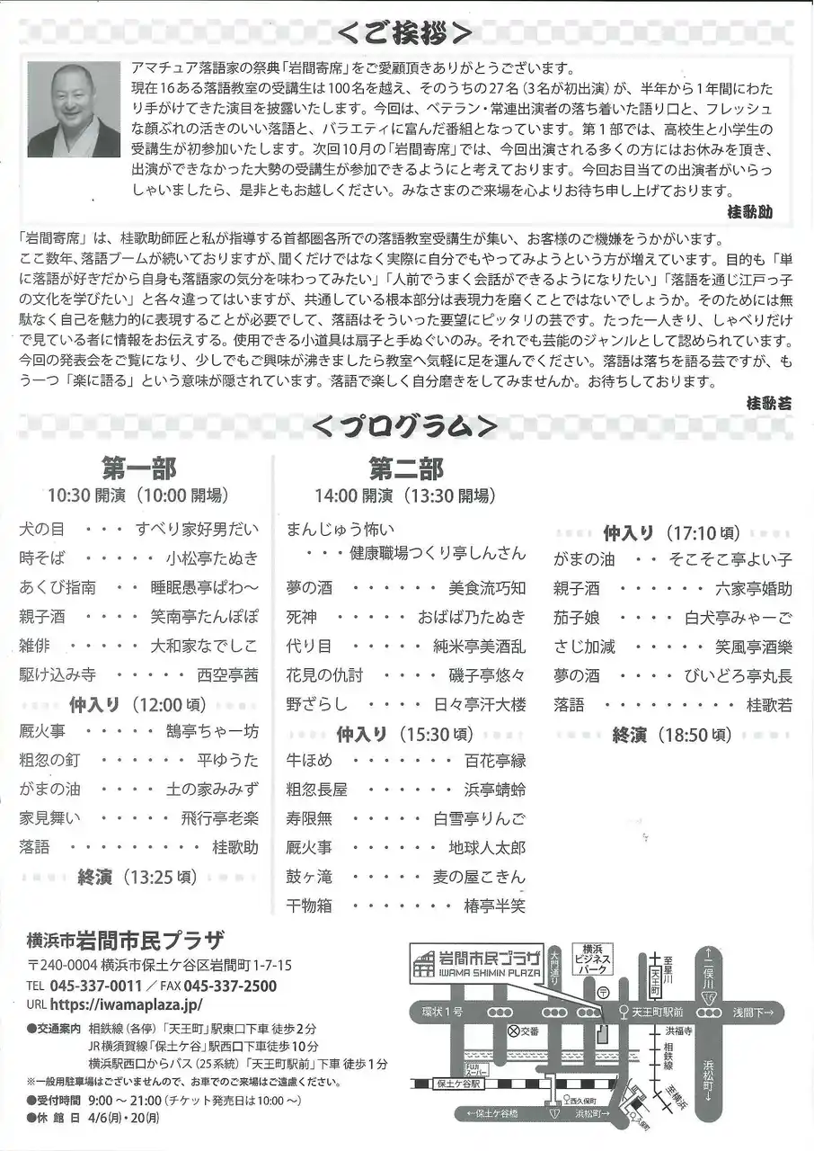 【横浜市岩間市民プラザ】「第十八回 千客万来!岩間寄席」