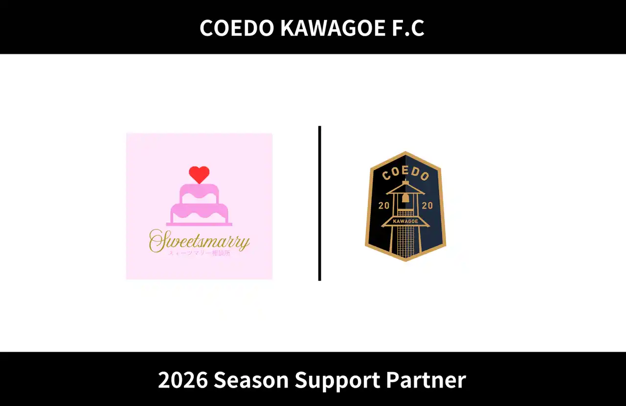 | COEDO KAWAGOE F.Cを運営するCOEDO KAWAGOE F.C株式会社(埼玉県川越市、代表取締役 有田和生)は、富士見市を拠点にお見合いから、ご成婚の瞬間まで、会員様に寄り添った婚活サポートをおこなう結婚相談所、Sweetsmarry相談所(埼玉県富士見市、代表 佐佐木さや)と2026シーズンのサポートパートナー契約を締結したことを発表いたします。 | |||