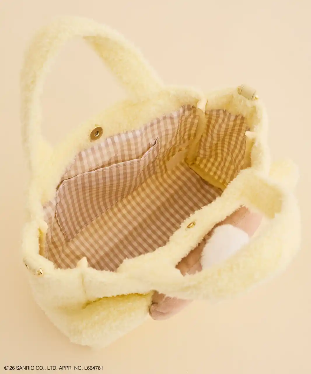 また、ふわふわのファー素材でポムポムプリンの顔を表現したバッグや、おしりをモチーフにしたポーチがラインアップ。2Wayトートバッグの裏地にはギンガムチェック、スクエアトートとポーチには“チームプリン”の総柄を取り入れ、使うたびに世界観をお楽しみいただけるデザインに仕上げました。 |