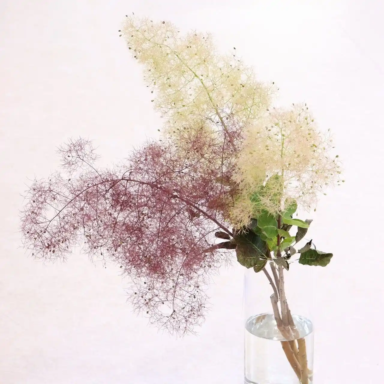 スモークツリー: 花が咲いた後の花柄(かへい)がわたがしのようにふわふわと伸びる落葉低木 |