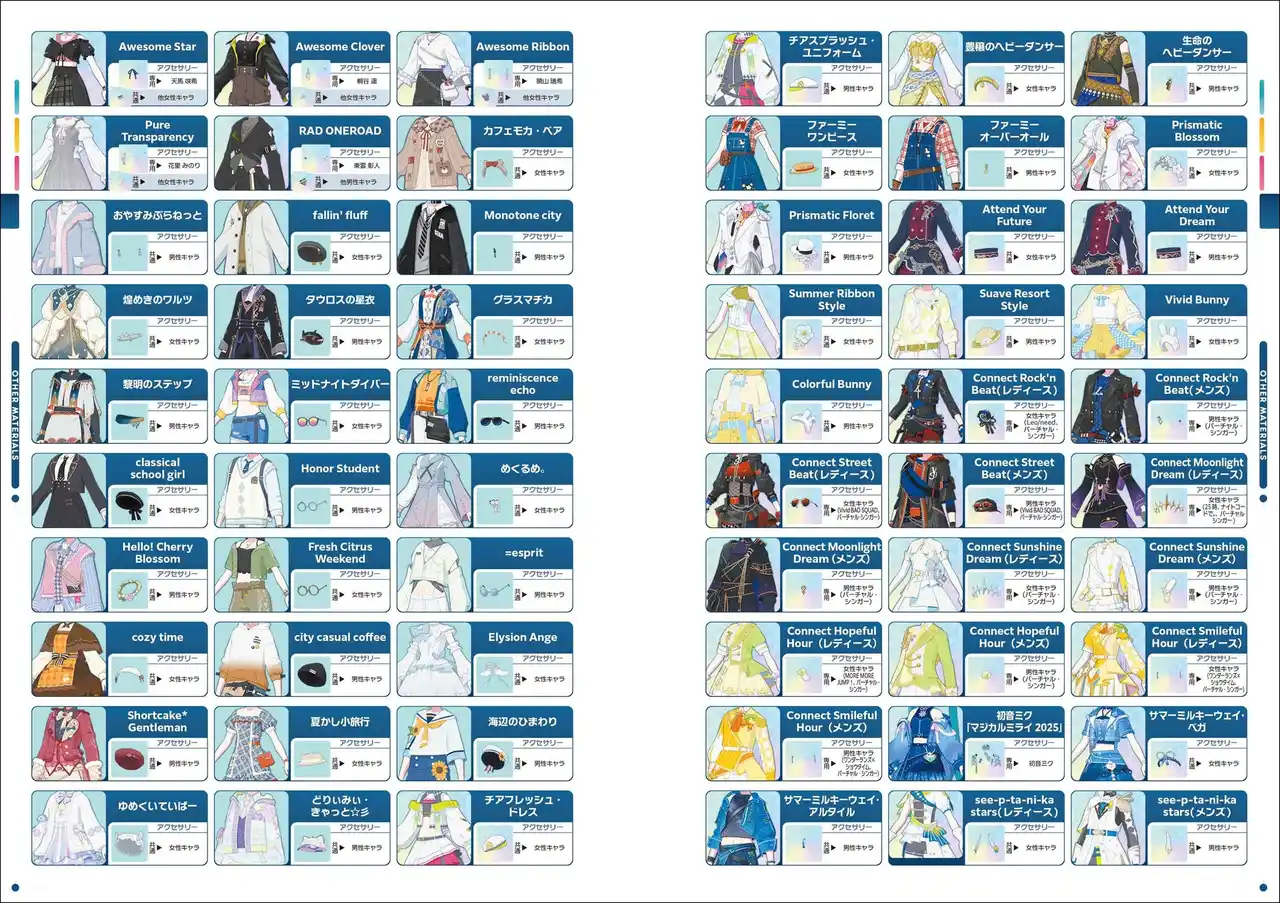 | 2024年10月以降に実装されたイベントイラストを細部まで楽しめる大判サイズで掲載するほか、ライブ衣装やCDジャケットアートなど多彩なビジュアル素材をボリュームたっぷりに収録しています。 | |||
