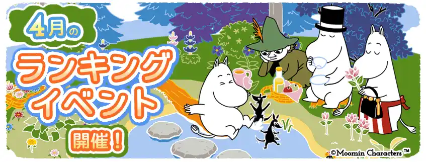 ポッピンゲームズのスマートフォン向け箱庭アプリ『ムーミン ~ようこそ!ムーミン谷へ~』では、4月3日より「4月のランキングイベント」を開催いたします。 |