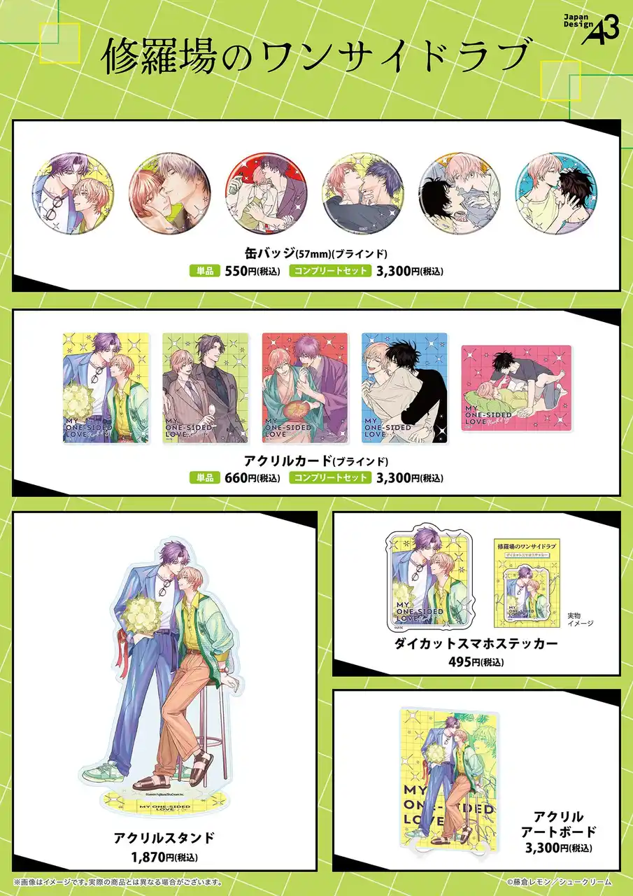 | 藤倉レモン先生が手掛ける『修羅場のワンサイドラブ』(from RED/シュークリーム 刊)の新作グッズが登場! 明日4月3日(金)から、eeo Store 池袋本店にて店舗販売がスタートします(新作グッズは通販サイト「eeo Store online」でもお取り扱い中)。 | |||||||||