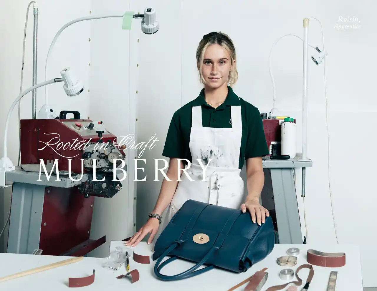 この春、マルベリーは「Back to the Mulberry Spirit(マルベリーの精神への回帰)」を掲げ、ブランド発祥の地である英国サマセット州の自社工場「ザ・ルーカリー」に再びスポットライトを当て、ブランドの職人たちとそのクラフツマンシップへの献身を称えるキャンペーンを発表します。 |
