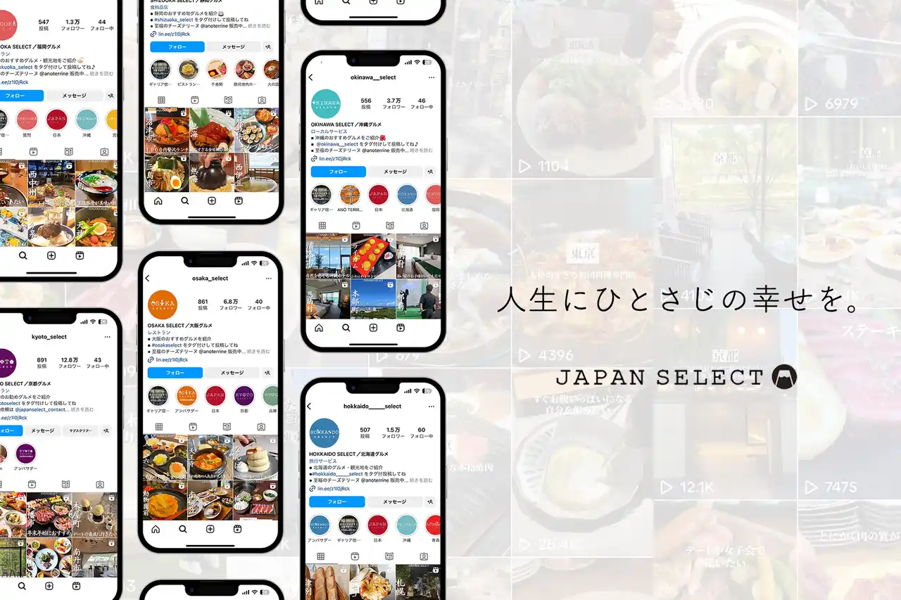 全国47都道府県の地域観光に特化したInstagramアカウント(例:kyoto_select)を運営しており、総フォロワー数は220万人以上にのぼります。TikTokでも40万人がフォローしており、とくに「Japan Travel Select」は14.5万人の支持を集め、インバウンド向けPRにも強みを発揮しています。 |