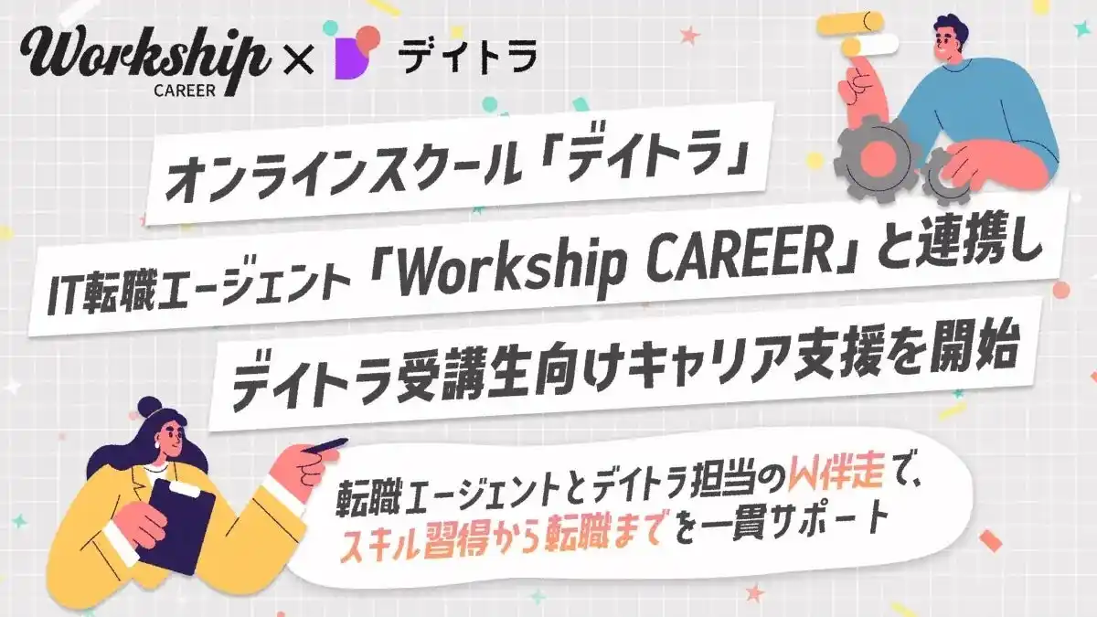 | Workship CAREERは、IT・DX人材のスキルと希望に合ったキャリア実現を支援する転職エージェントです。デイトラは実践的なカリキュラムと受講生の質の高さで業界でも高い評価を得るオンラインスクールであり、今回の連携により、スキル習得からキャリア形成まで一貫して支援できる体制が整いました。学んだことを活かして新しいキャリアに挑戦したい方の自己実現を、両社で伴走してまいります。 | |||