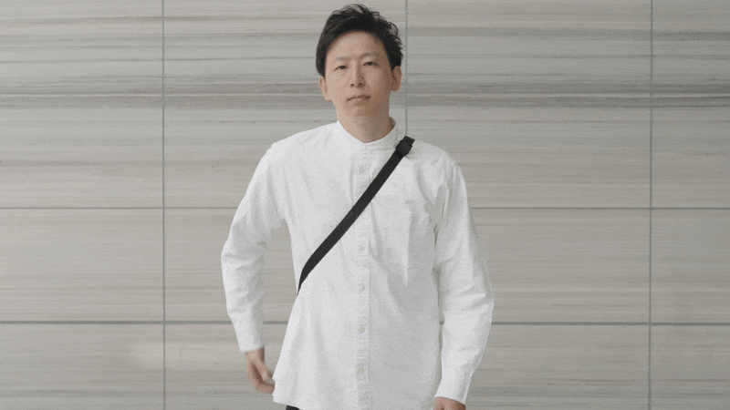 ストラップの長さをスムーズに調節できる仕組み「サムスライダー」を搭載しました。 ループに指を入れてスライドするだけで、瞬時に長さを調節することができます。 調節範囲は80cm~110cmで、30cmもの調節幅があります。 ストラップの幅は、ファッションの一部として違和感なく馴染むよう、細めの2.5cmに設定しました。 アパレル寄りのデザインを意識しています。 |