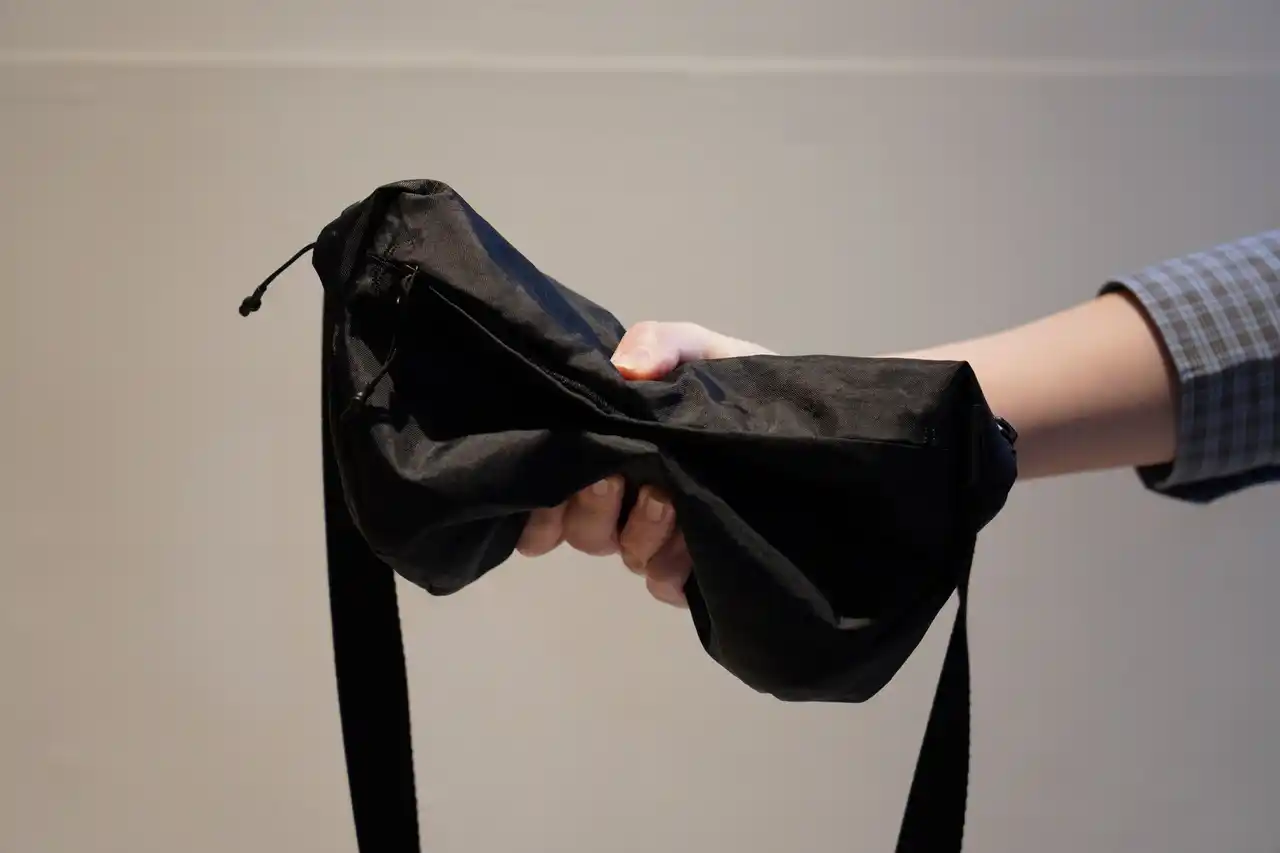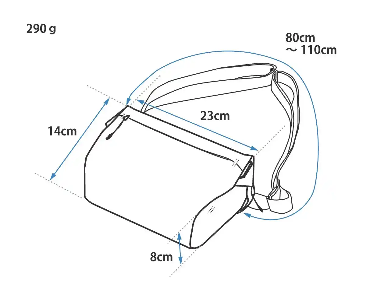 滑らかで軽く、ハリのある高耐久素材「ECOPAK EPX200」を使用しています。撥水性も備えています。 +C スリングは、緩衝材による保護機能は必要最小限に抑え、薄さやコンパクトさを優先しました。 |