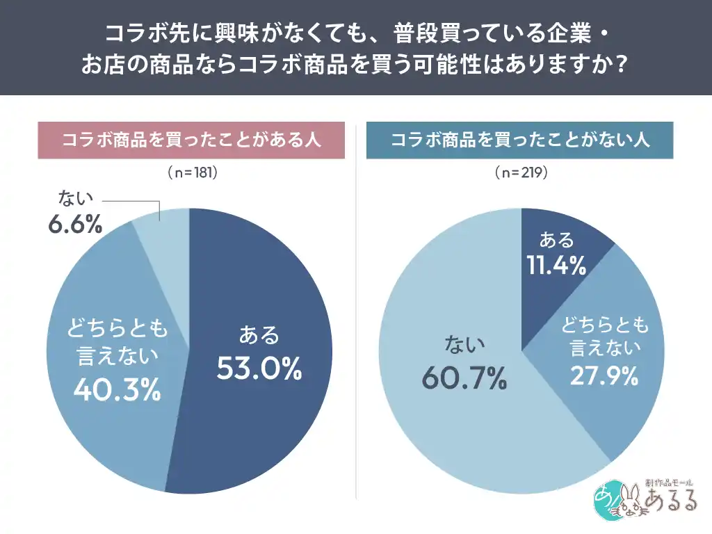 購入経験者の53.0%は「コラボ先に興味がなくても購入する可能性がある」と回答した一方 |
