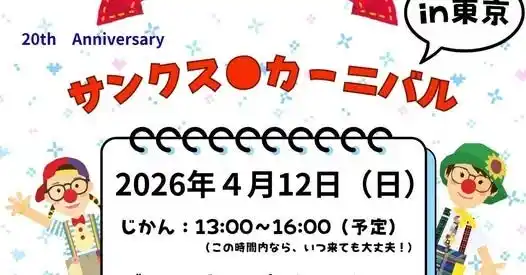 | 認定NPO法人日本クリニクラウン協会(事務局:大阪府、事務局長:熊谷恵利子)は、設立20周年を記念し、2026年4月12日(日)に東京・国立オリンピック記念青少年総合センターにて、記念イベント「サンクス カーニバル」を開催いたします。 | ||||||||||
