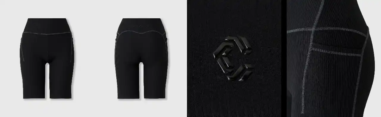 ブラトップとセットアップでの着用が可能なショートレギンスは、身体に沿うシャープなシルエットでアクティブな動きにフィット。ウエスト内側には滑り止めを施し、激しい動きの中でも安定した着用感をキープ。両サイドにポケットを備え、スマートフォンなどの携帯にも対応する実用性を兼ね備えています。 |