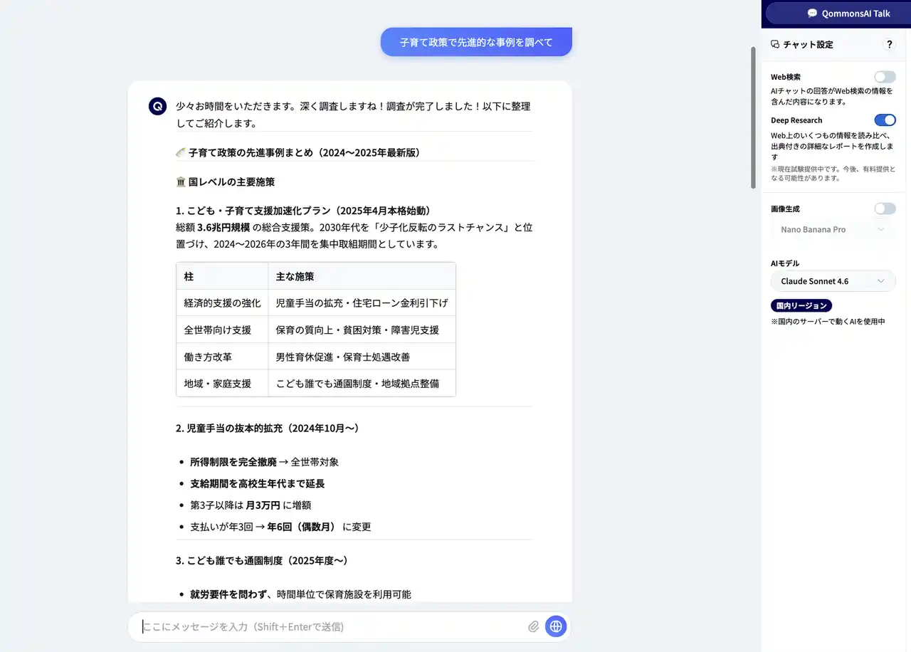行政ナレッジとの連携も可能な「Deep Research」機能を搭載 |
