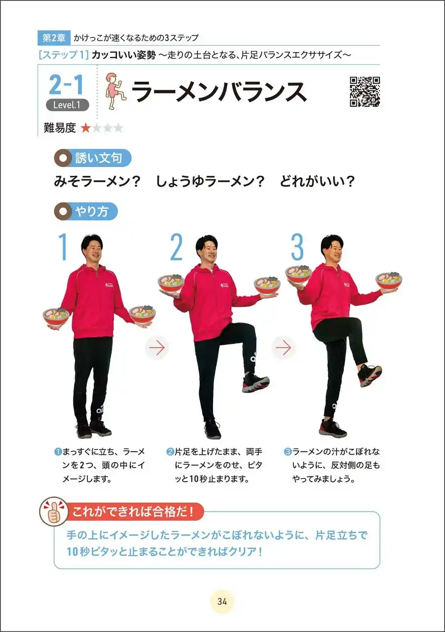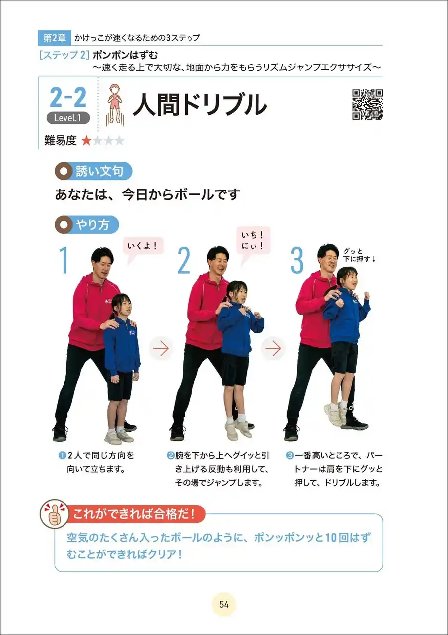 本書では、これまで13年間で、延べ10万人以上の子どもたちを指導してきた著者が考案した「たけのこ式かけっこメソッド」を紹介。かけっこが速くなるために必要な3つの力、「カッコいい姿勢」「ポンポンはずむ」「グングンすすむ」を楽しく習得できるエクササイズが多数収録されています。 |