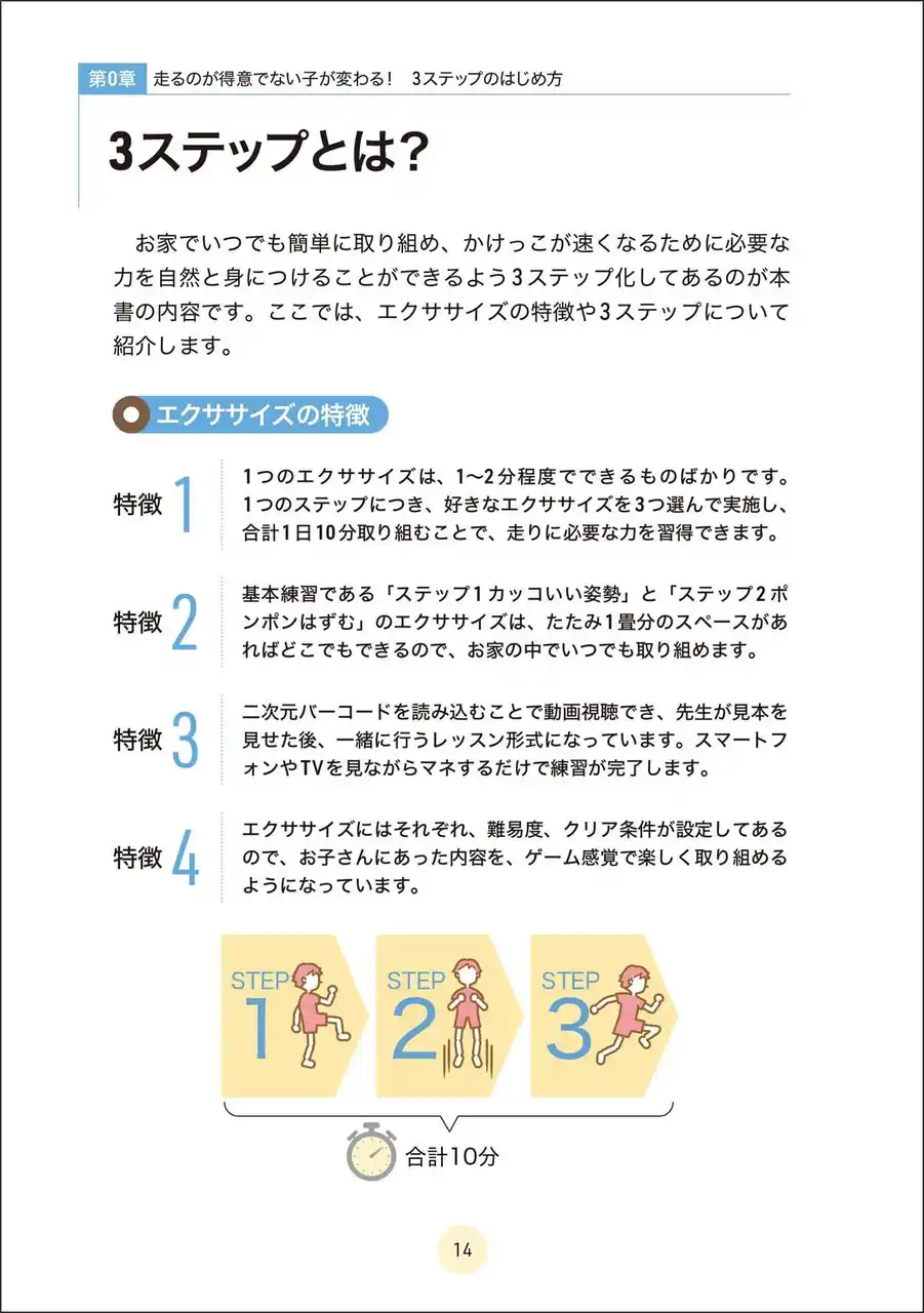 たった10分のエクササイズの積み重ねが、子どもの「できた!」「もっとやりたい!」につながり、走ることへの自信につながっていきます。 |