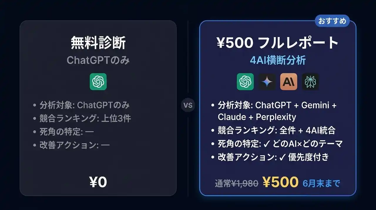 フルレポート:4AI横断診断 通常¥1,980 → キャンペーン¥500(6月末まで) |