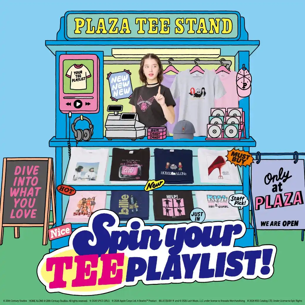 今年も、この時期のPLAZAは、期間限定でTシャツショップに大変身!「Spin your TEE PLAYLIST!」をコンセプトに、映画やドラマ、ミュージック、そして世界中で愛されるキャラクターなどをデザインに落とし込んだ、約140種以上もの限定Tシャツが勢ぞろいします。 |
