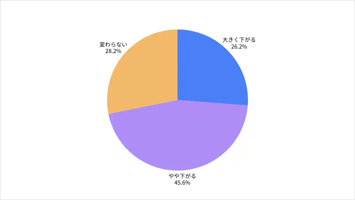 大きく下がる(24.0%) / やや下がる(46.1%) / 変わらない(28.6%) / むしろ応援したくなる(1.3%) |