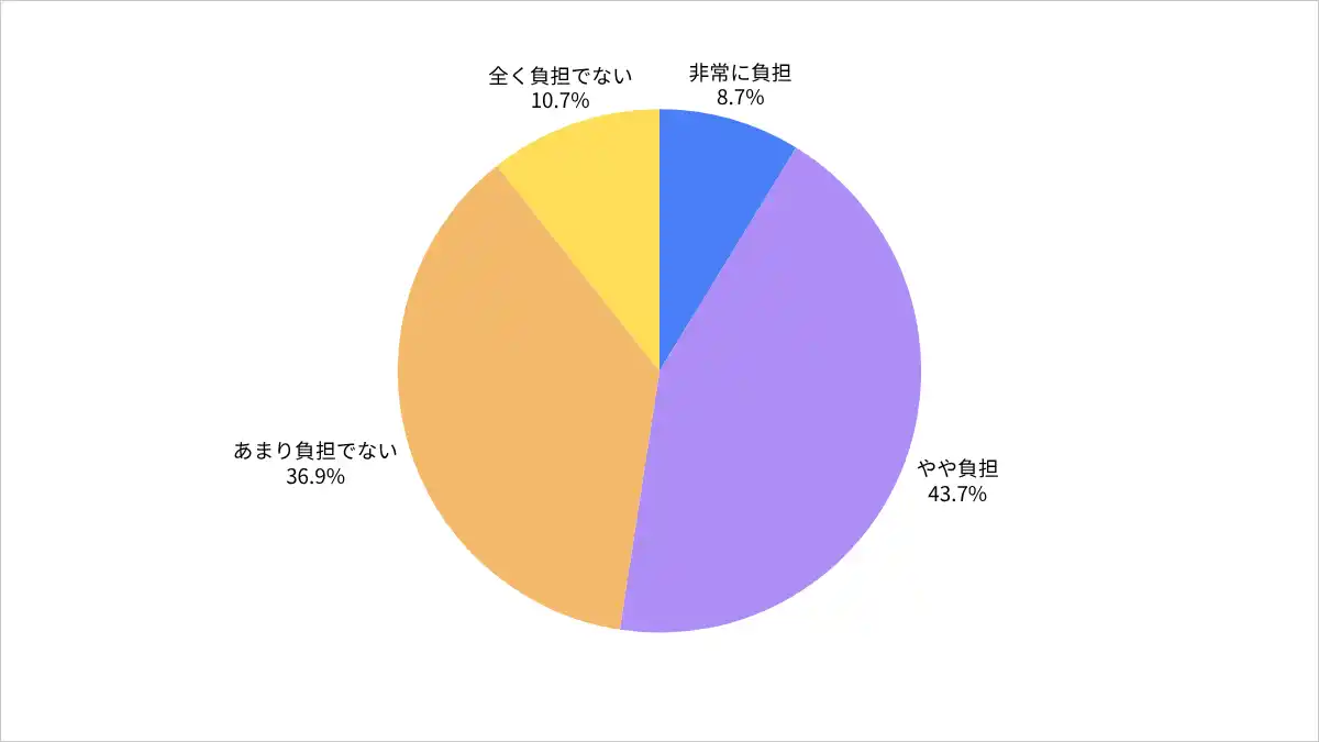 非常に負担に感じる(16.5%) / やや負担に感じる(35.9%) / あまり負担に感じない(38.8%) / 全く負担に感じない(8.7%) |