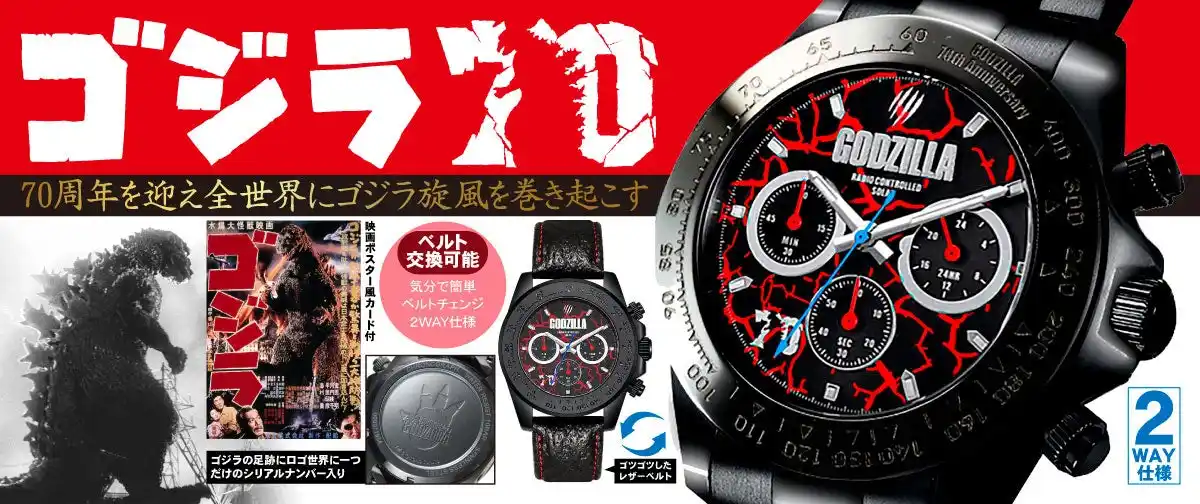 公式:ゴジラ生誕70周年記念限定『電波ソーラークロノグラフウォッチ』 |
