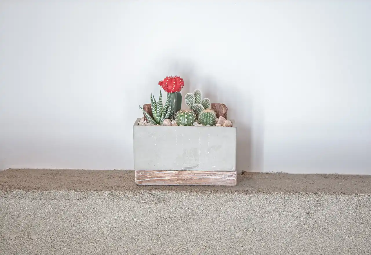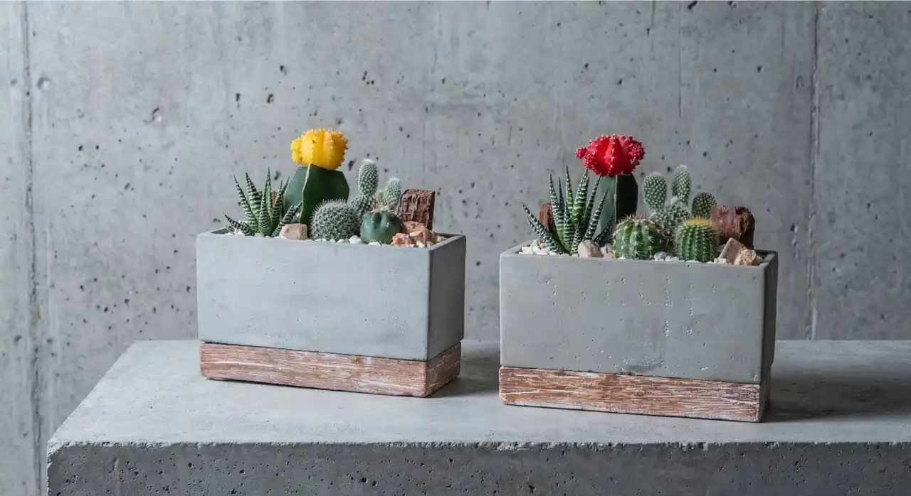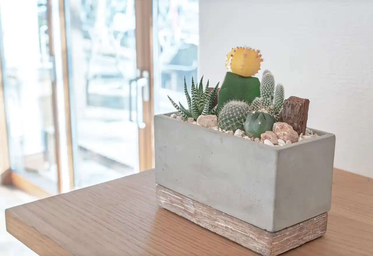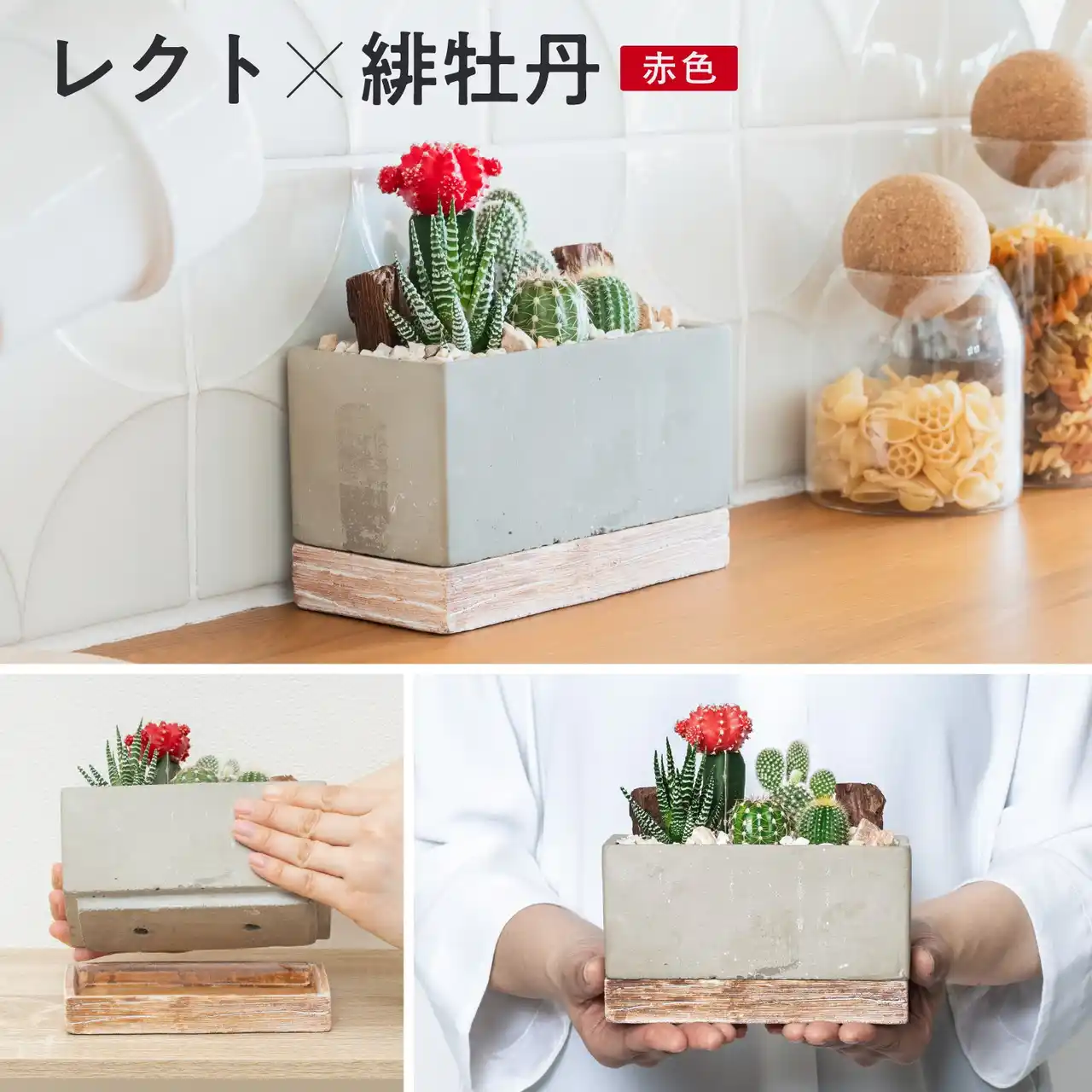 | 緋牡丹サボテンの寄せ植えをセメント鉢に。ミニマルで都会的なデザインが、一人暮らしの部屋にもすっとなじむインテリアグリーン。初心者でも育てやすく、ギフトにも選ばれる観葉植物を発売開始します。 |
