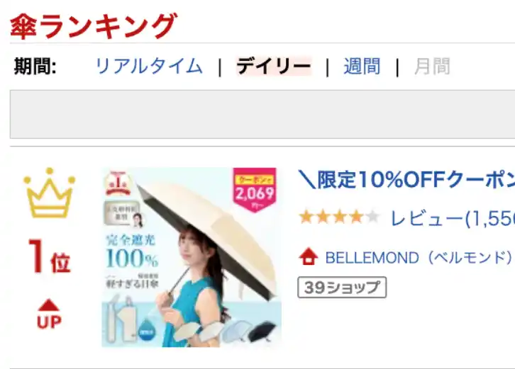 Fun Standard株式会社(株式会社RKB毎日ホールディングスグループ、本社:福岡県大野城市、代表取締役:大屋良介、笹森広貴)が展開するブランド「BELLEMOND(ベルモンド)」の折りたたみ日傘「晴雫 - はれしずく -」は、「日傘なのに“電車でも家でも快適”」という新しい使用体験が注目を集め、楽天市場の傘ランキング(2026年3月22日付)で1位を獲得しました。さらに、シーズン前にも関わらず、3月20日にはAmazon・楽天あわせて1日で300本を販売しています。 |