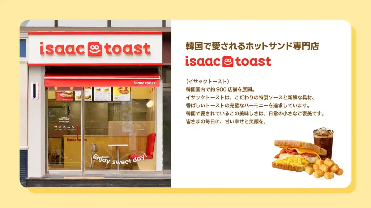 | 韓国で約900店舗を展開する人気のトースト専門店「isaac toast(イサックトースト)」の店の味である「イサックトースト ソース」とジャム3種類(アップル、ピーチ、キウイ)を日本で発売開始いたします。また、発売を記念し、ブランドモデルを務める大人気グループSEVENTEENのMINGYUさんをゲストに迎えた、一夜限りのオフラインイベントを2026年5月21日(木)に開催することを決定いたしました。 | ||||||||||||||