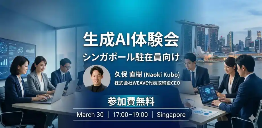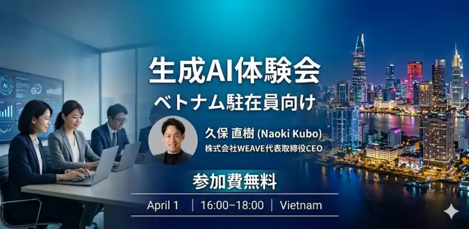 株式会社WEAVE(本社:広島県、代表取締役CEO:久保直樹)は、シンガポールおよびベトナムにて、海外駐在員向けの生成AI体験型研修を実施しました。参加者の満足度は5点満点中4.89、さらにアンケート回答者の100%が「すぐに業務で活用したい」と回答しました。日本企業で生成AI活用が進む中、海外拠点との「AI活用格差」という課題に対する実践的な取り組みです。 |