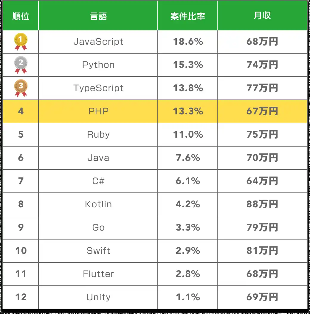 | 【2025年】PHP案件の平均年収、案件数|フリーランス副業調査 | |||||