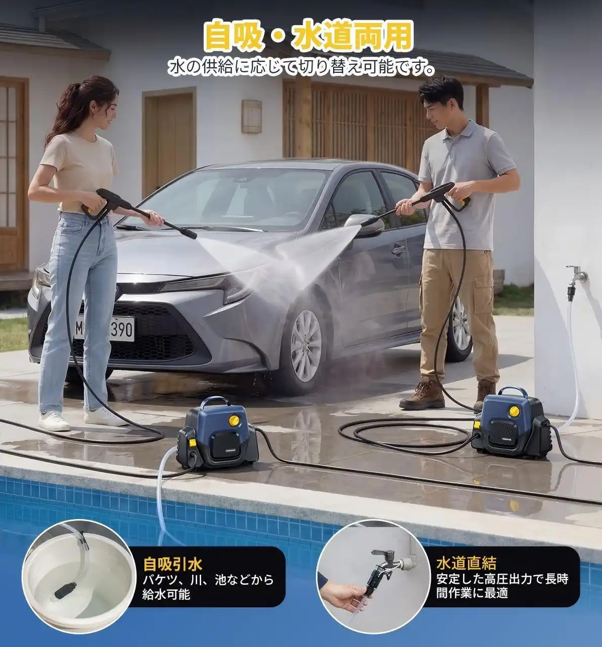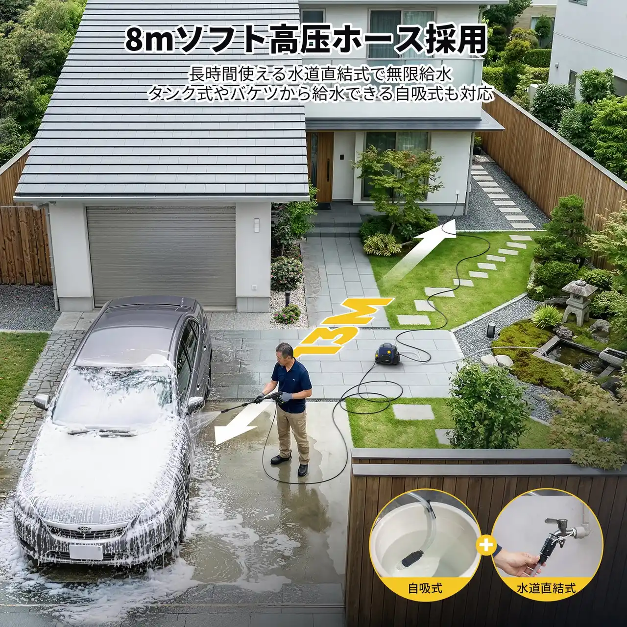 洗車から外壁・庭の清掃まで、 幅広いシーンに対応する高い汎用性を備えています。 |