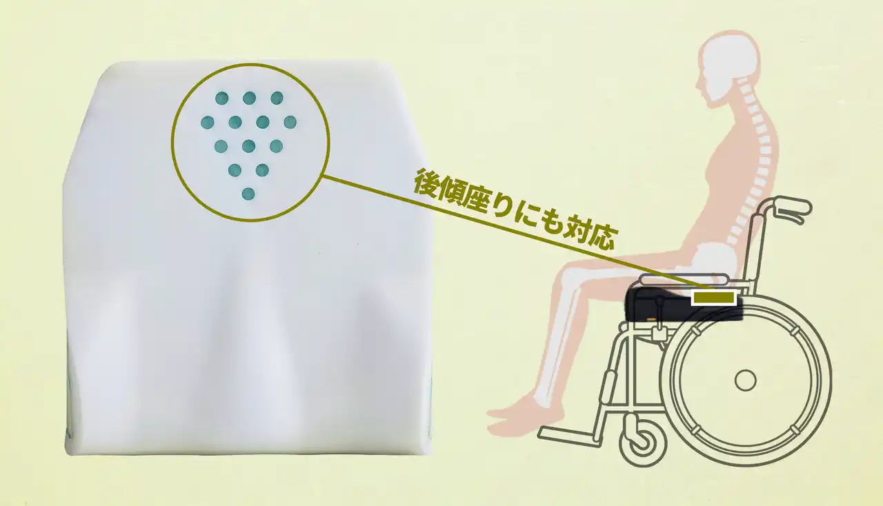 | 新たに加わった機能。13個のくぼみ形状により、尾骨・仙骨部の圧分散を効果的に行います。骨盤が後傾した座り姿勢に対応します。 | |||||||||||||||||||||||||||||||||||||||||||||