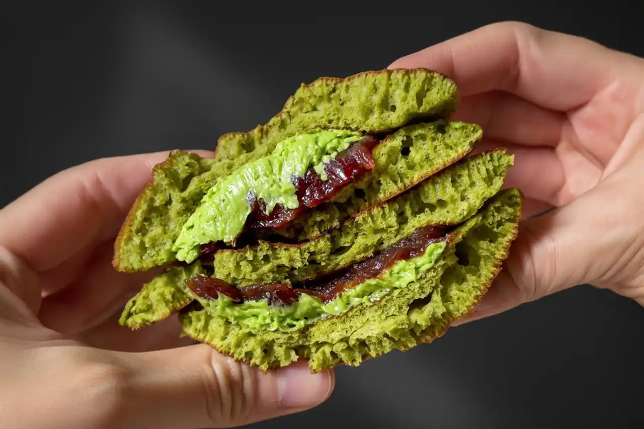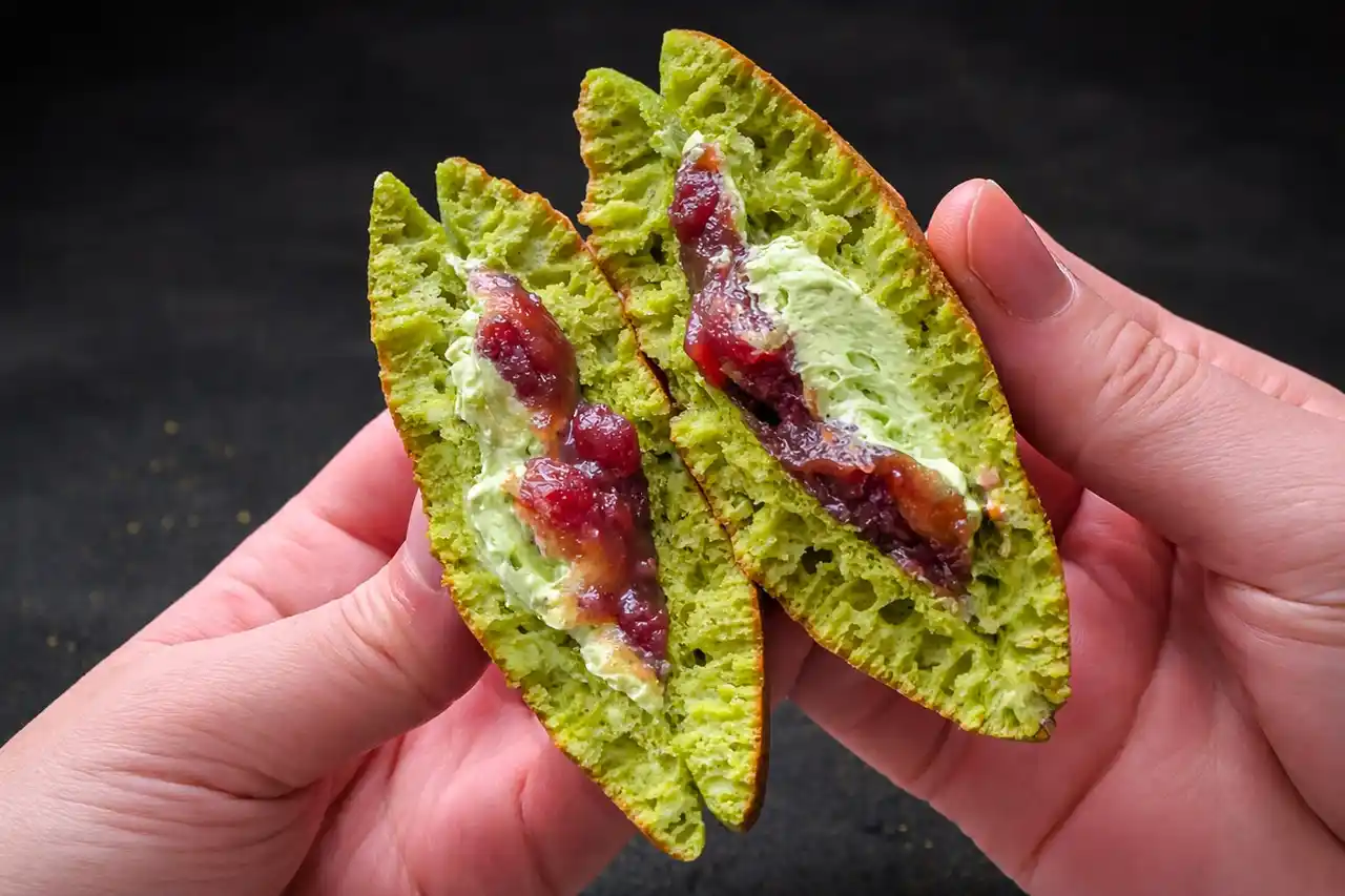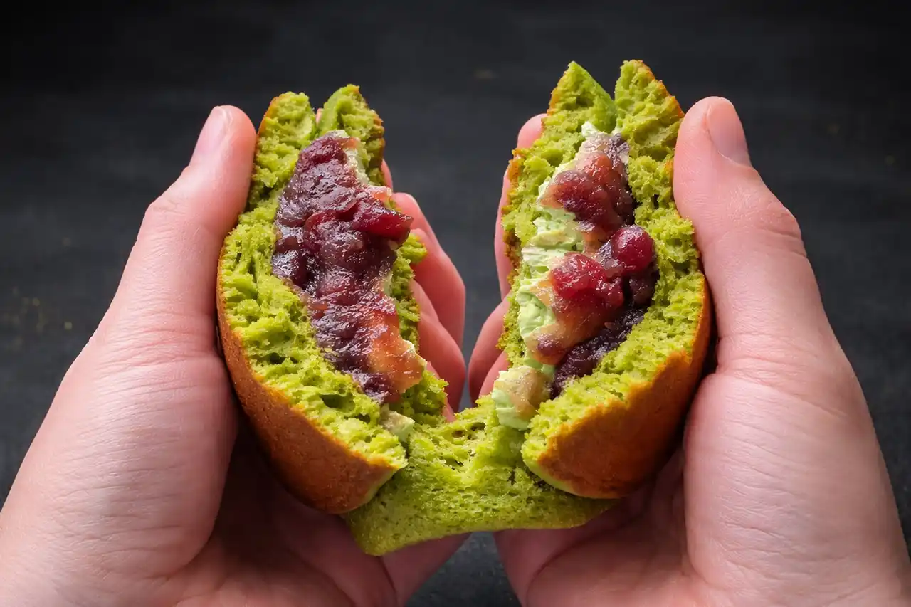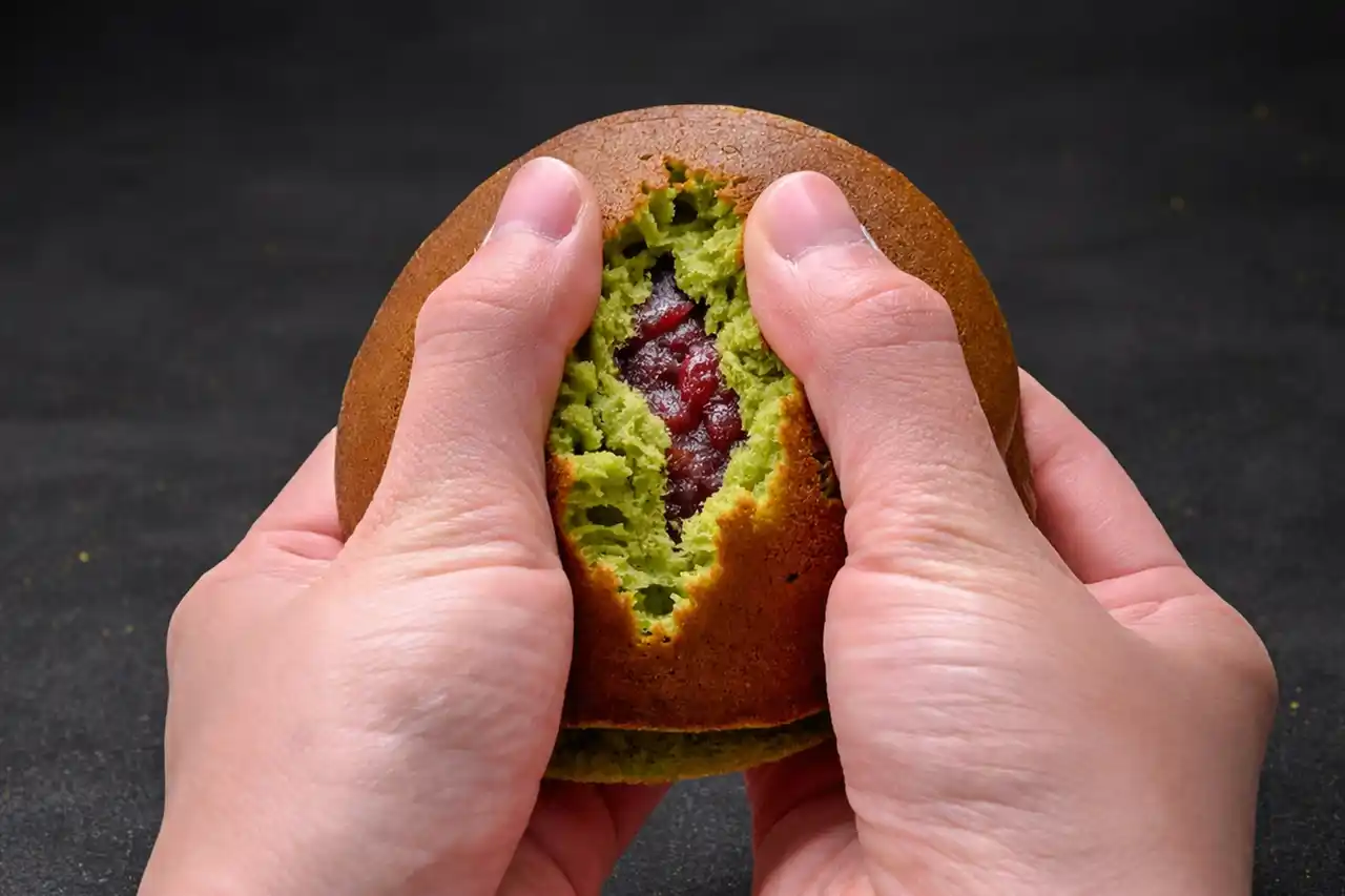 ひと口かじれば、唇にふわりと触れるその質感は、まるで極上の絹のよう。しっとりやわらかな皮から、香ばしい風味と抹茶の香りがふわりと鼻へ抜けていきます。 |