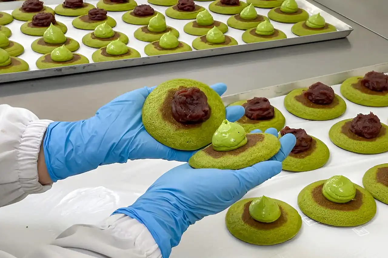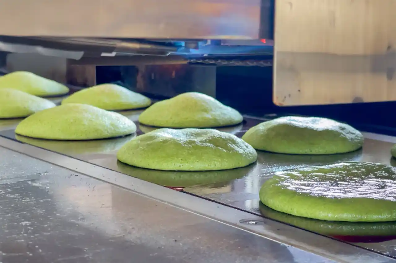 表面には香ばしく美しい焼き色をしっかりと付けつつ、内側には抹茶本来の鮮やかな緑をしっかりと残す──この絶妙な焼き加減は、繊細な火加減を操る職人の熟練の技と、熱を加えても色褪せない上質な一番茶「緑樹」が出合って初めて生まれるものです。 |