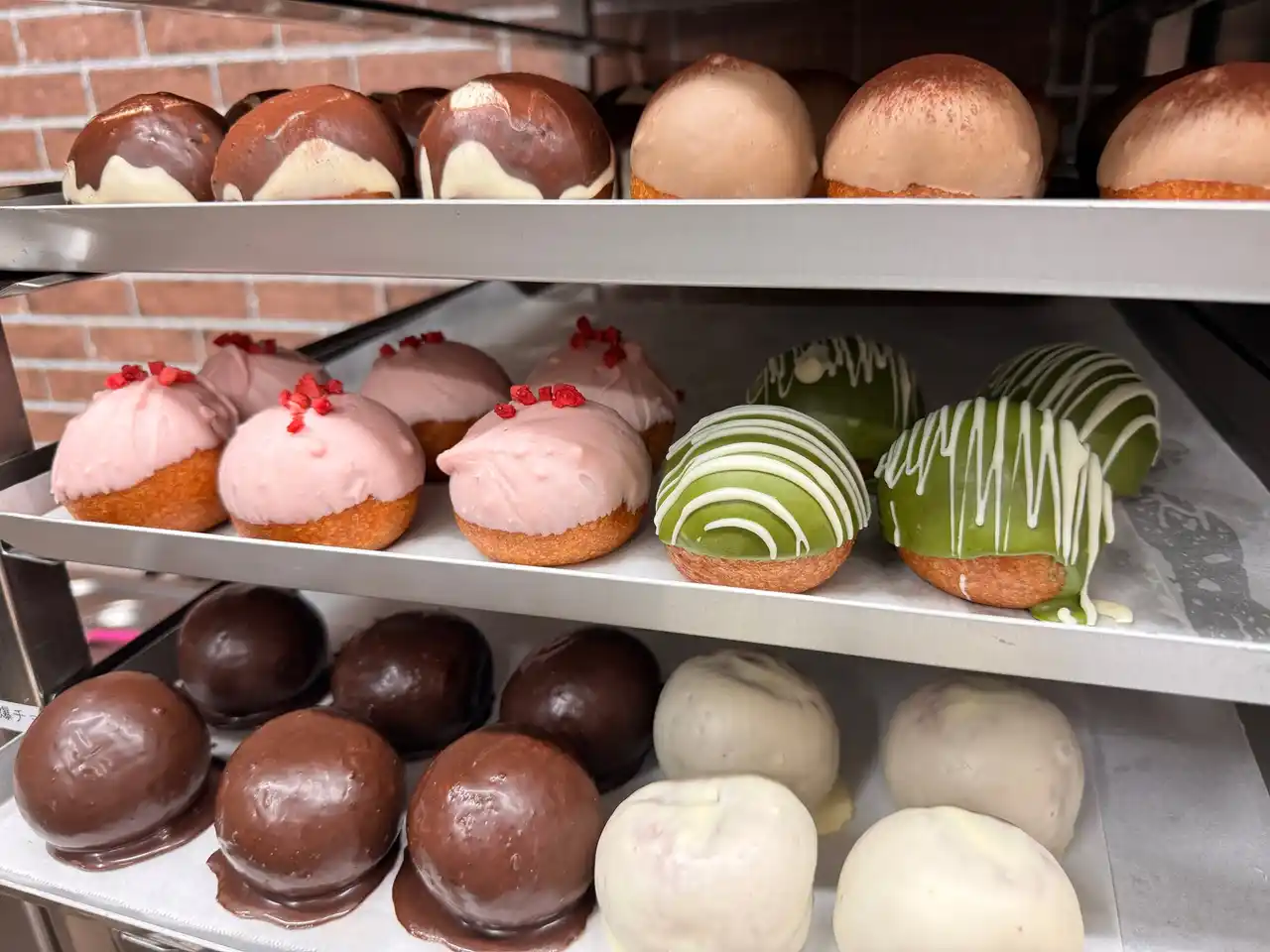 ● 爆もちドーナツ ころっとした見た目と、もっちりとした食感が特徴のドーナツ。 チョコ、Wベリー、ティラミスなどバリエーション豊富。 |